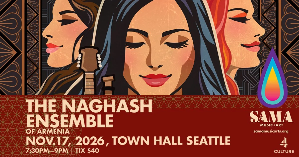 Join us for an extraordinary evening with The Naghash Ensemble, a group that weaves together the earthy spirituality of Armenian sacred song, the richness of new classical composition, and contemporary global influences. Featuring three remarkable female vocalists alongside master instrumentalists on duduk, oud, dhol, and piano, the ensemble performs original music by Armenian-American composer John Hodian inspired by the poetry of the 15th-century Armenian mystic and priest Mkrtich Naghash.